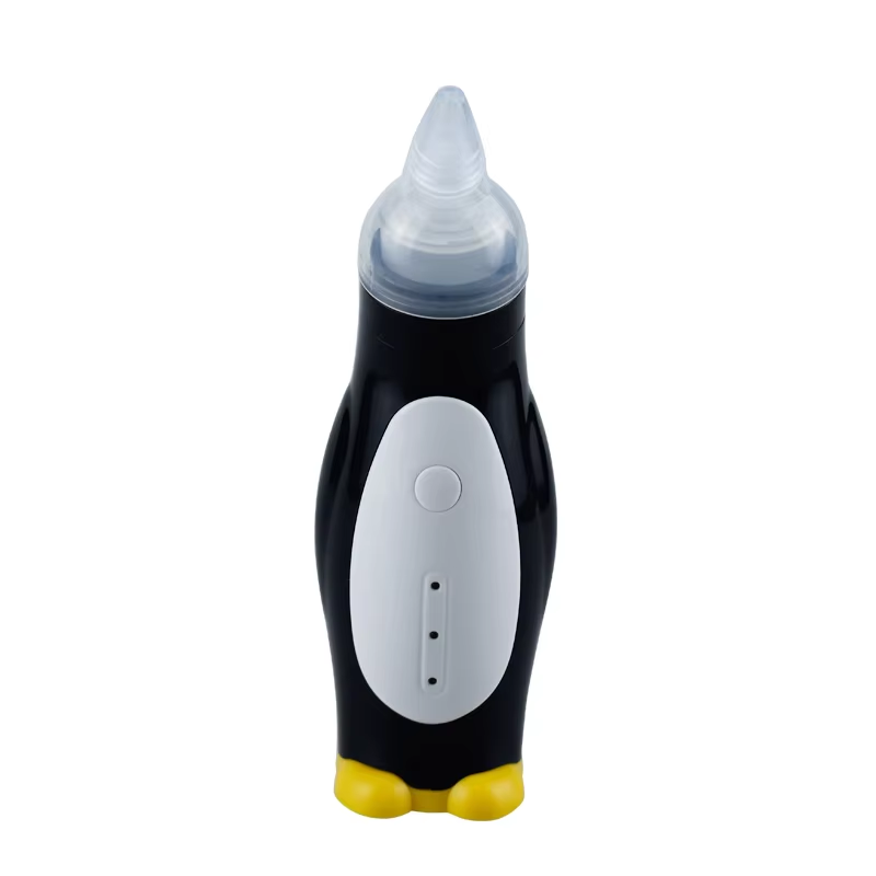 Limpiador de nariz con diseño de pingüino recargable PP y aspirador nasal eléctrico con punta de silicona suave para bebés