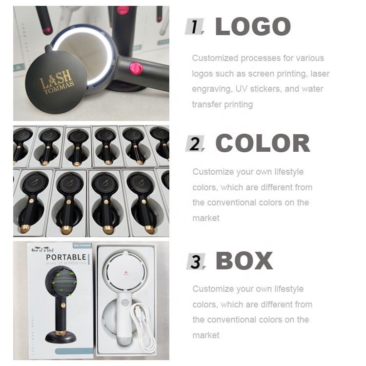 Nombre del Producto:Ventilador de mano con espejo de maquillaje LED