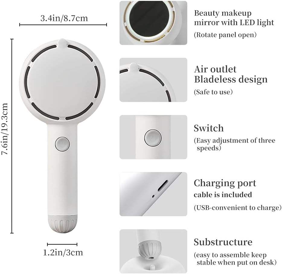Ventilador de mano con espejo de maquillaje LED