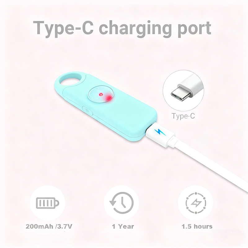 Llavero portátil de bolsillo pequeño recargable Llavero de autodefensa Alarmas de seguridad personal Alarma antiviolación