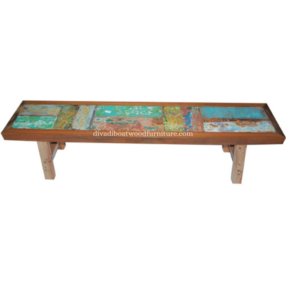 Banco Rita de Madera de Barco Reciclada, Diseño Patchwork, Color Original, Ecológico, Hecho a Mano, Minimalista, Sostenible, para Interiores y Exteriores