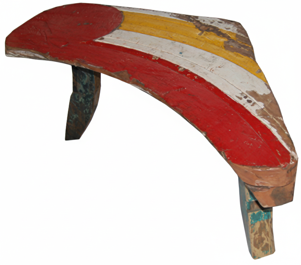 Banco Rudi de madera recuperada de barco, color original, diseño minimalista y sostenible para interiores y exteriores