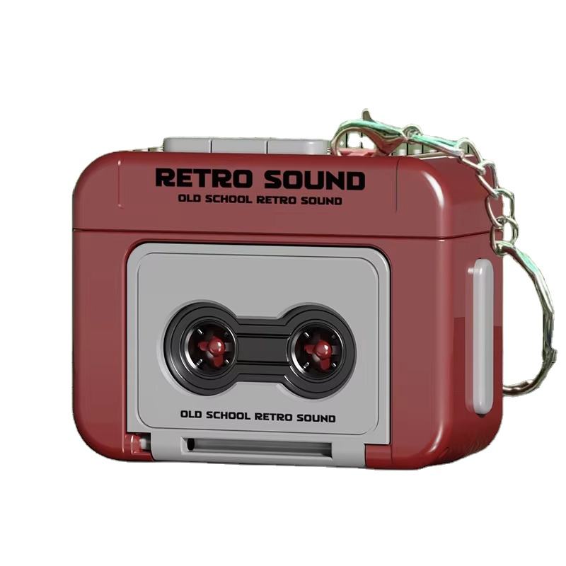 Grabadora de cinta grabable colgante rojo Mini grabación Retro diversión pareja música regalo llavero ornamento libro grabación llavero