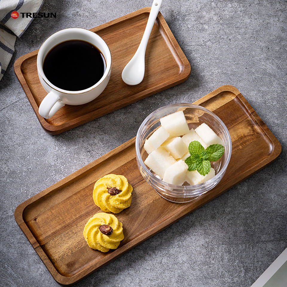 Platos Rectangulares de Madera de Acacia, Tabla de Cortar Moderna de Madera, Apta para Lavavajillas, para Cocina, Charcutería, Queso, Sushi, Fruta, Postre