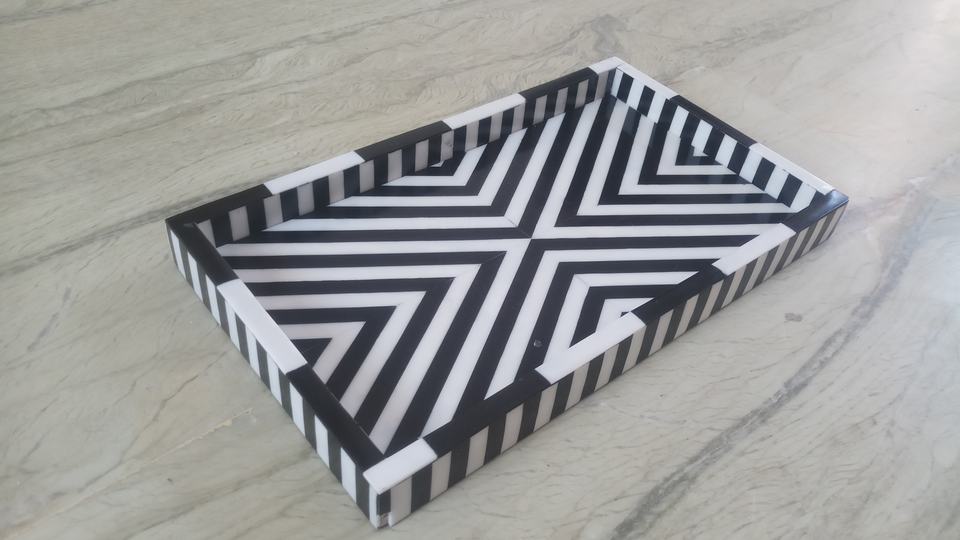 Bandeja Rectangular Hecha a Mano de Resina de 2 Colores, Bandeja de Resina para Servir en Mesa, Bandeja de Resina para Suministro de Alimentos en Hoteles, Bandeja de Resina para Servir Alimentos en Bodas