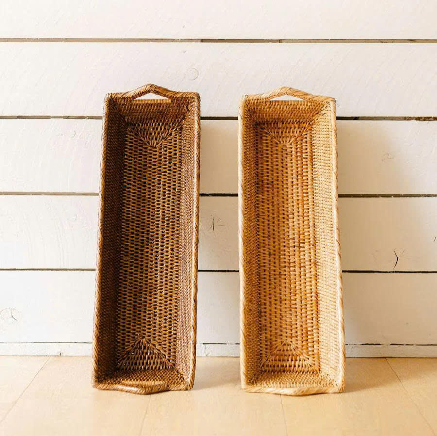 Bandeja Rectangular de Ratán Tejida a Mano con Asas Integradas, Pieza Decorativa Versátil para Organización y Estilismo de Mesa de Centro