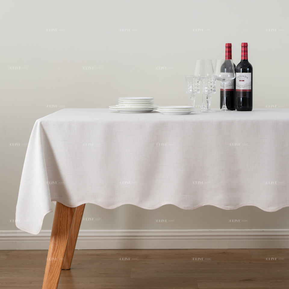 Mantel festoneado con aspecto de lino