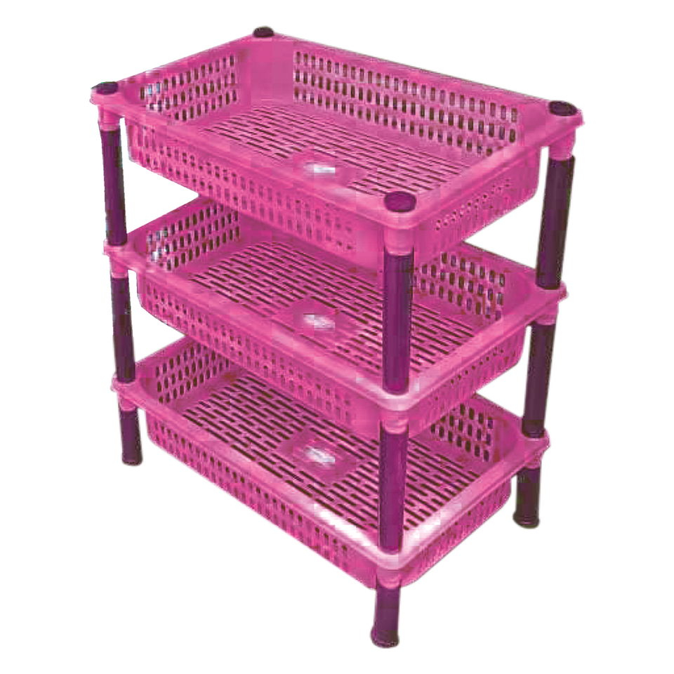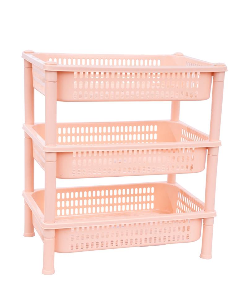 Carrito de Almacenamiento de Plástico Rectangular Color Rosa, Juego de 3, Estante Multiusos Indio, Organizador Ligero para Cocina y Baño