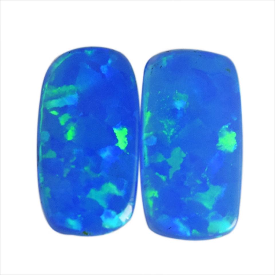 Pareja de Ópalos Naturales Azul Verde Rectangulares de 3 CTW, Tamaño Cabujón 16x8x2 MM, para Fabricación de Joyas, Gema Tallada a Mano