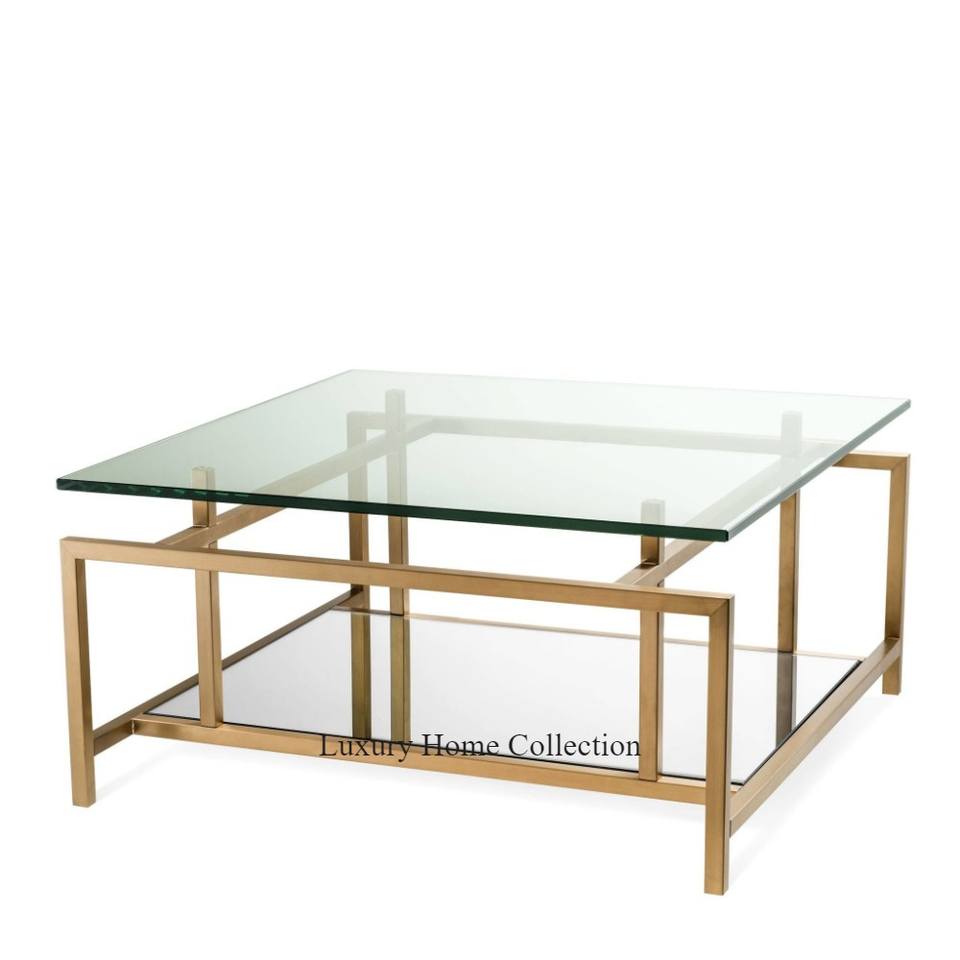 Mesa auxiliar de metal con forma rectangular y Mesa Central Aspecto admirable Color dorado Chapado brillante con mesa superior rectangular hecha de vidrio