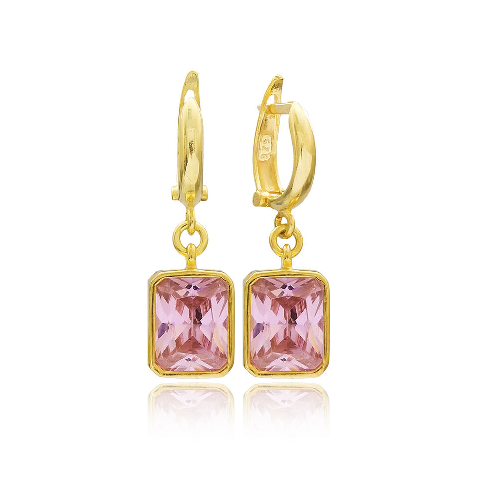 Pendientes colgantes de Plata de Ley 925 hechos a mano para mujer, aretes, Piedra Rosa, turco, forma rectangular