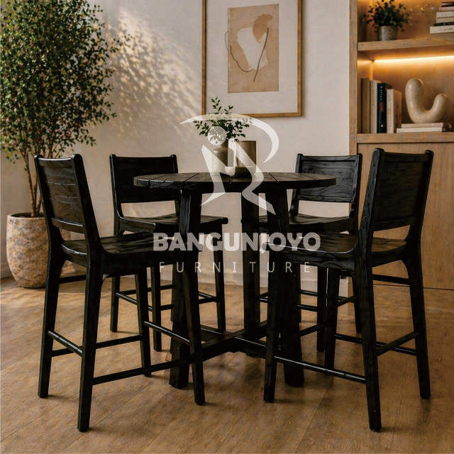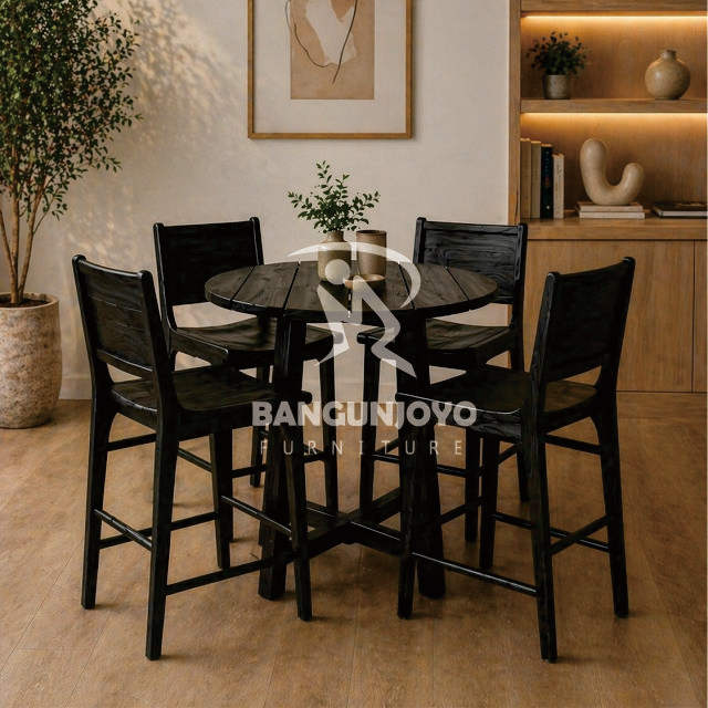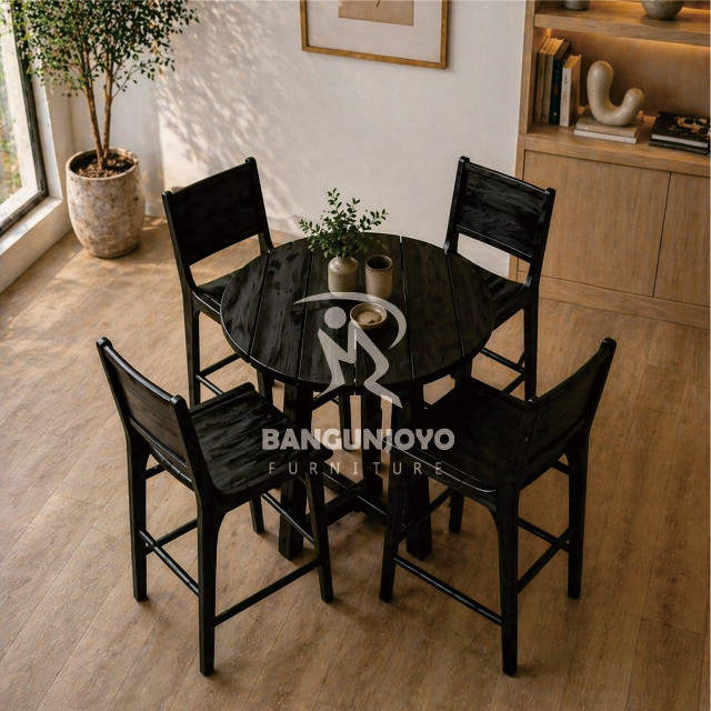 Juego de Mesa y Sillas de Bar de Madera de Teca Sólida Rectangular, Diseño Moderno y Ecológico para Hogar, Bar y Cafetería