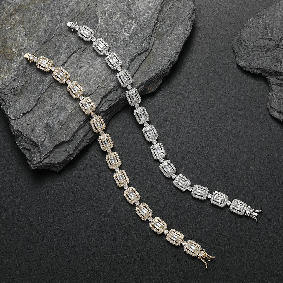 Pulsera de tenis rectangular cuadrada combinable, collar de moda Hip Hop Tanjing Lijing de cobre y circonio