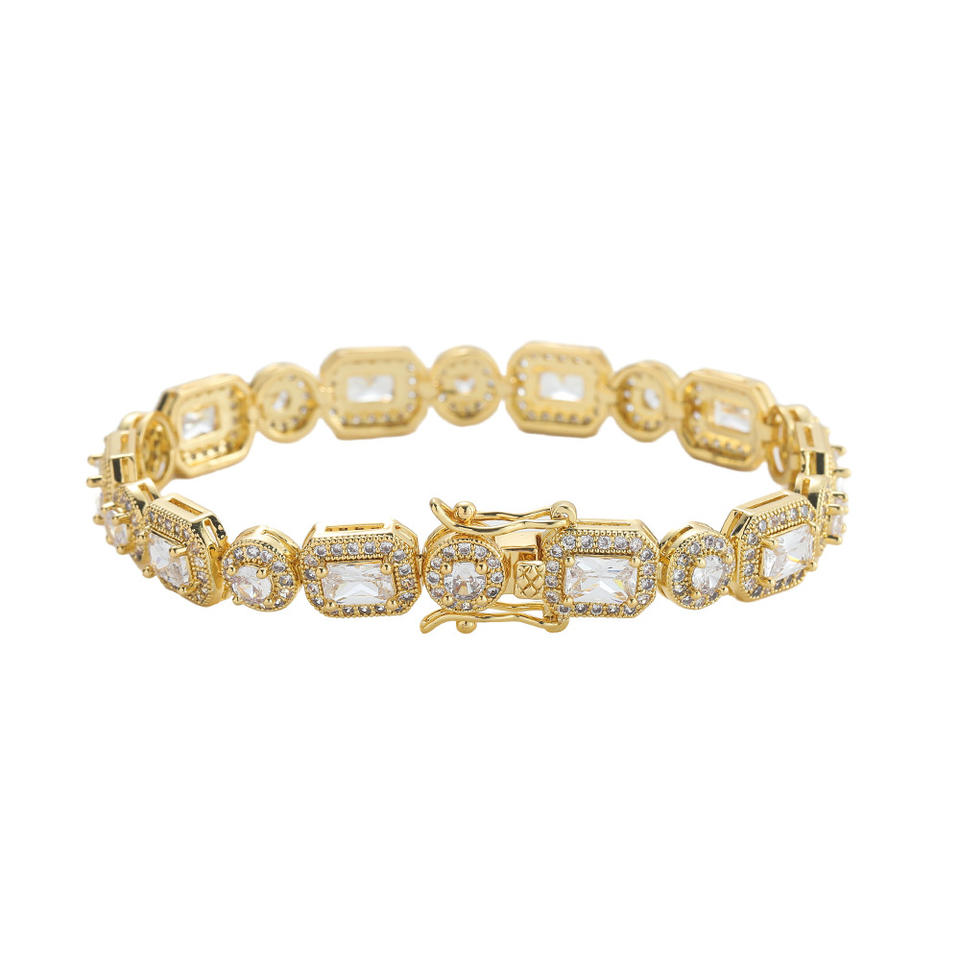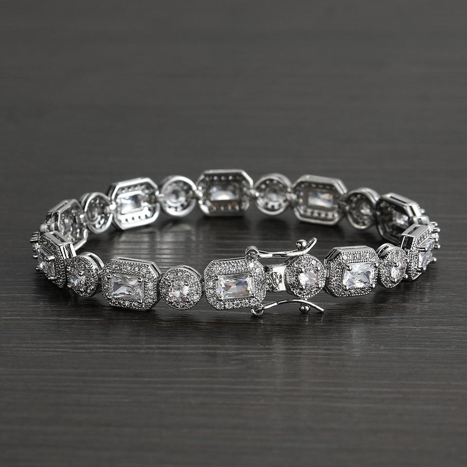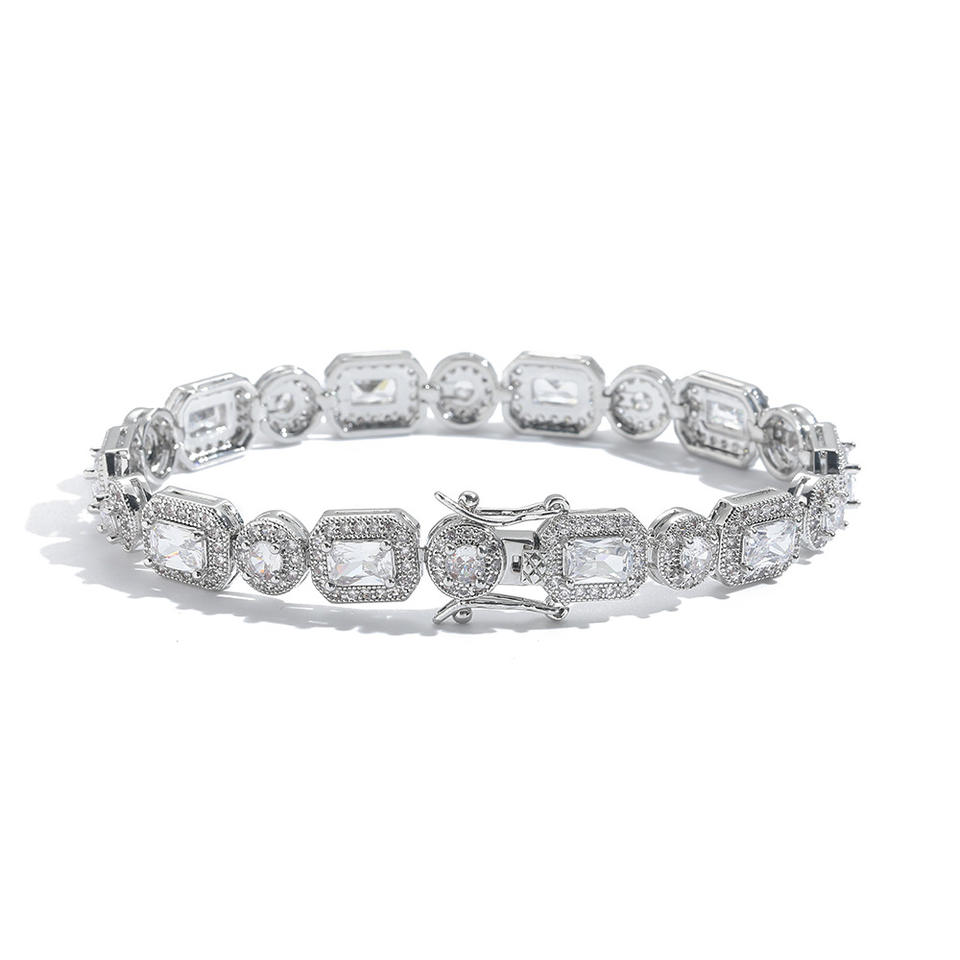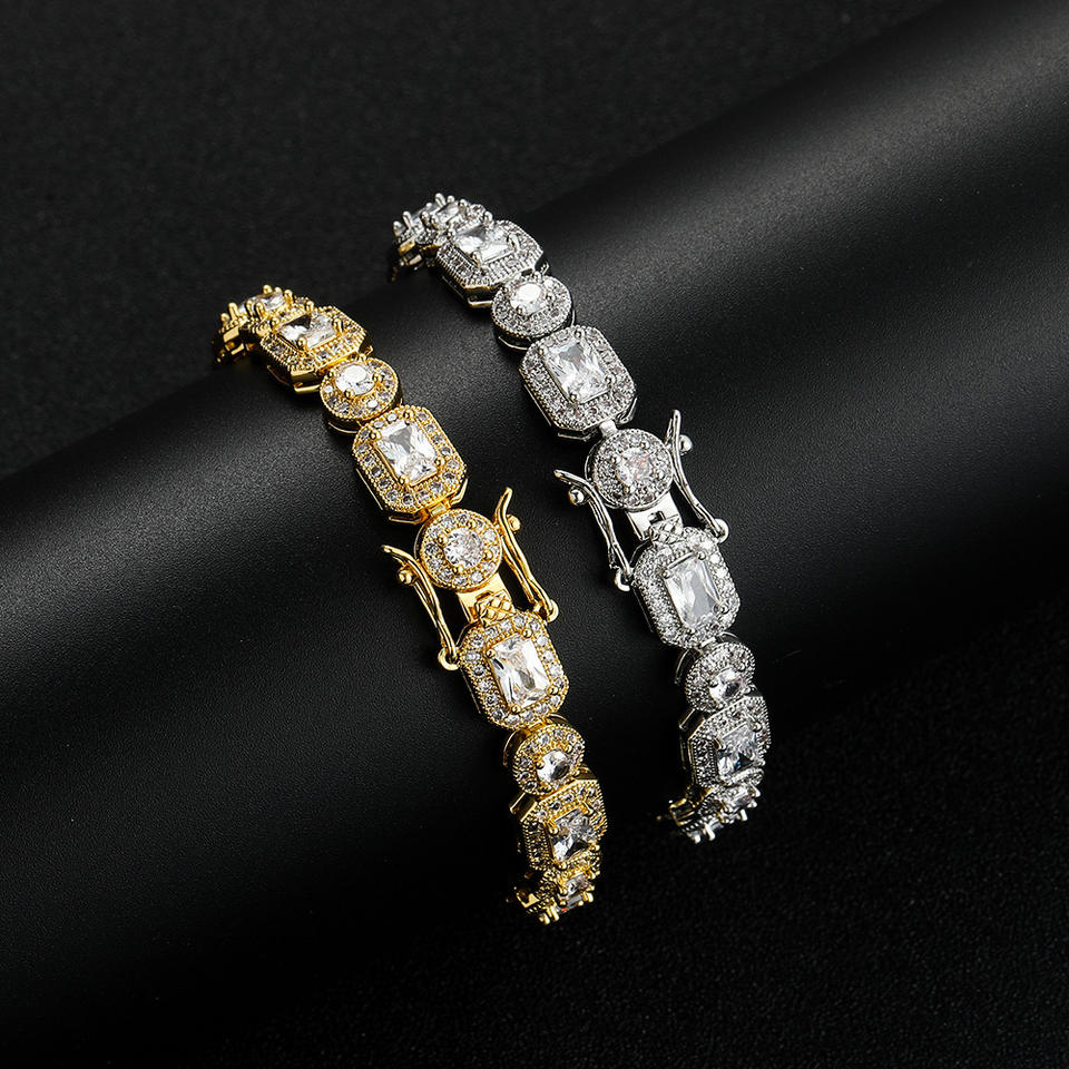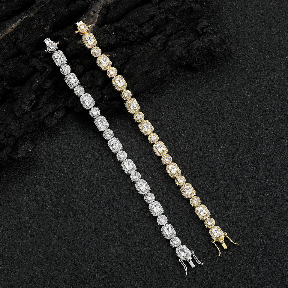 Pulsera de tenis rectangular cuadrada de combinación libre, pulsera de hip-hop con incrustaciones de cobre y circonio. Moda Tanjing