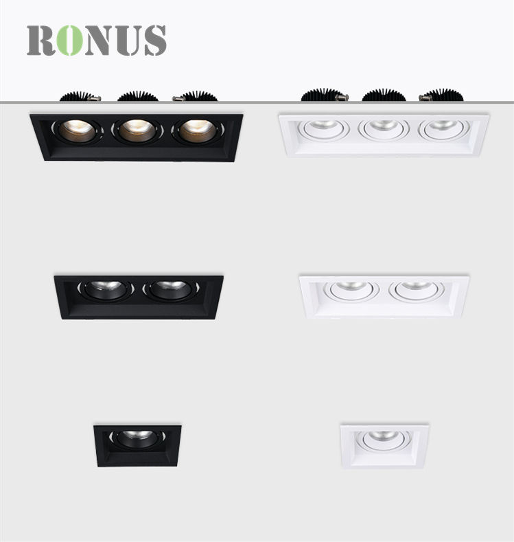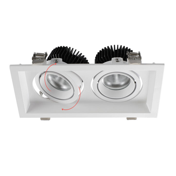 Foco LED Rectangular de doble cabeza, luz de techo COB, empotrada, cuadrada, ajustable, 12W x 2