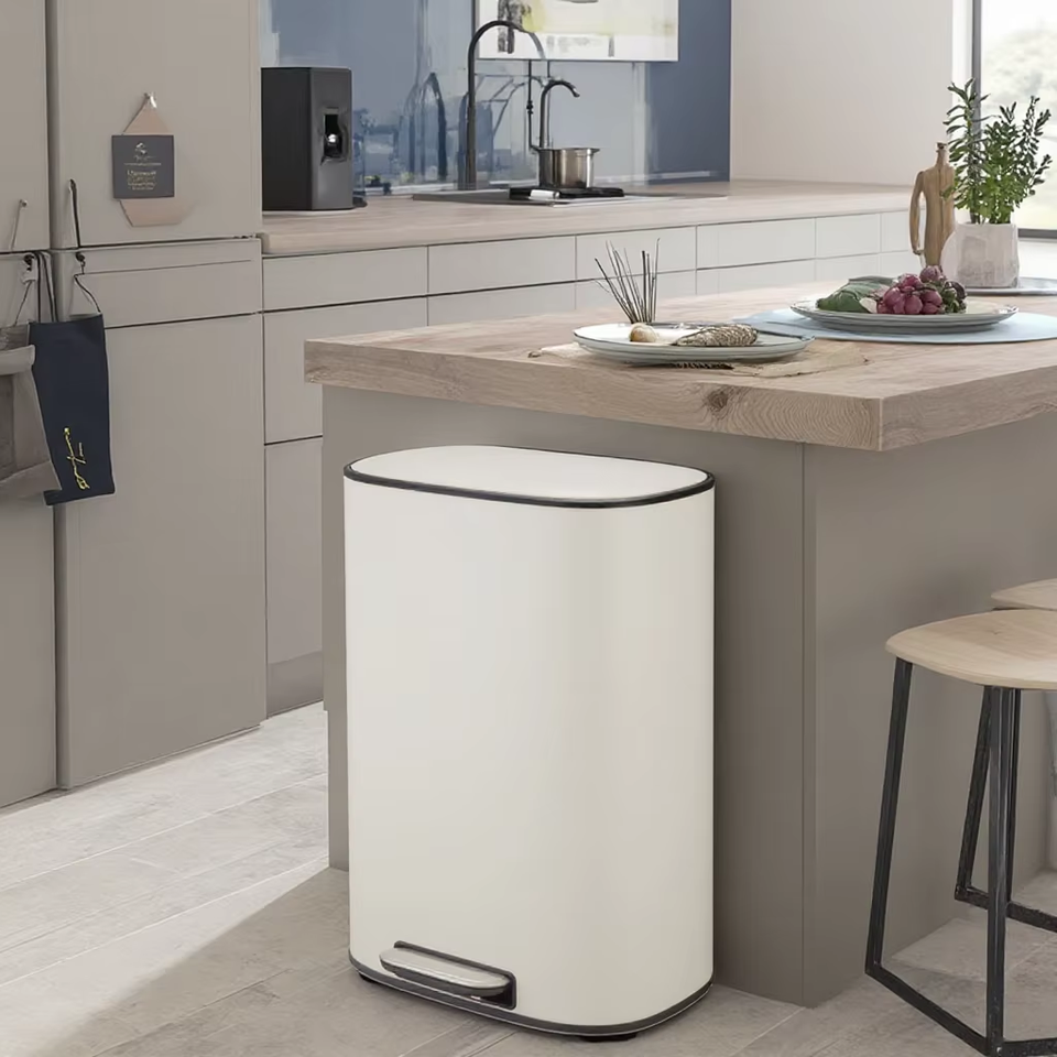 Cubo de basura rectangular con pedal de 13 galones, cubos de basura de cocina de acero inoxidable, 50 litros