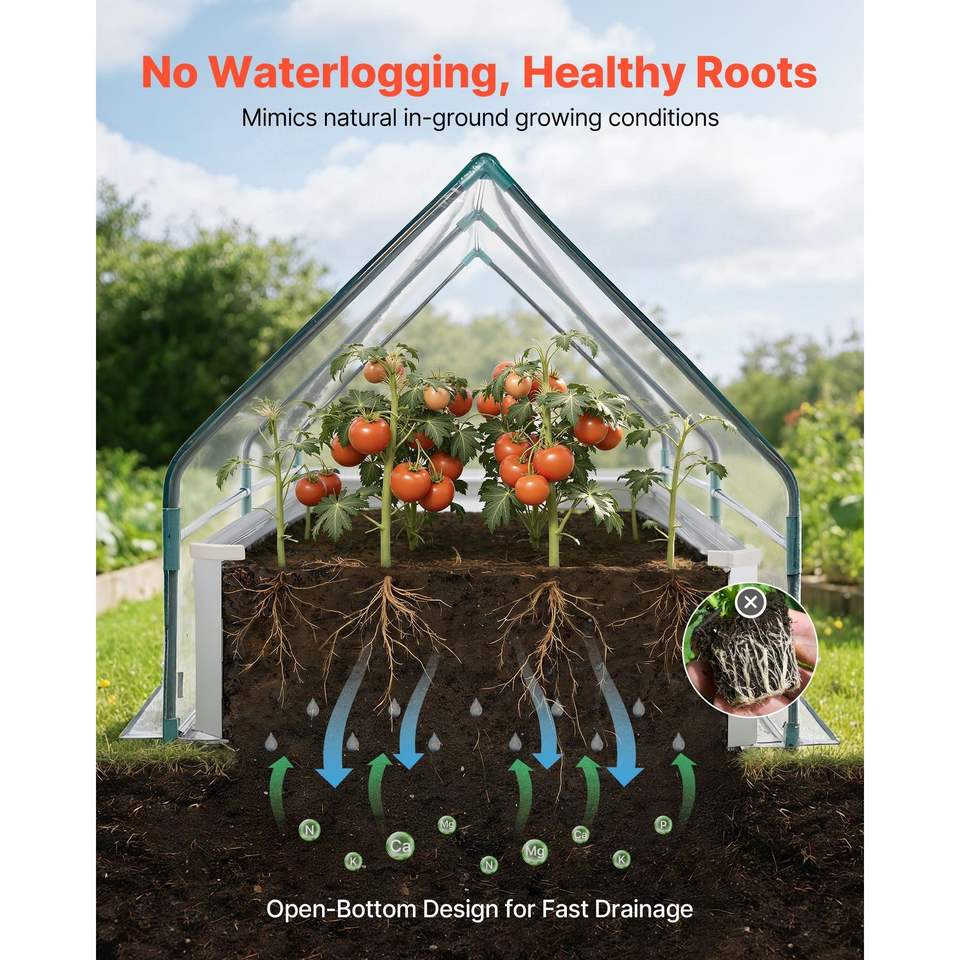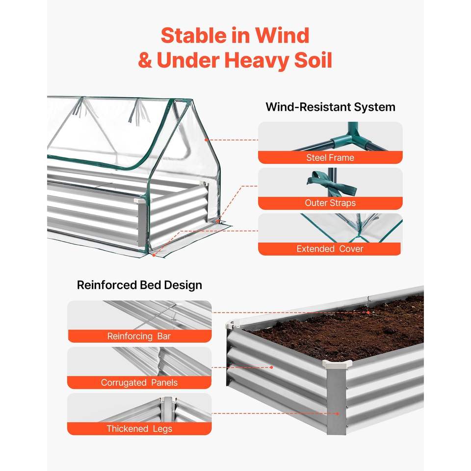 Jardinera Rectangular Elevada de 6 x 3 x 1 pies, Kit de Jardinera de Metal Galvanizado con Cubierta de Invernadero de PE, Invernadero para Jardín Exterior