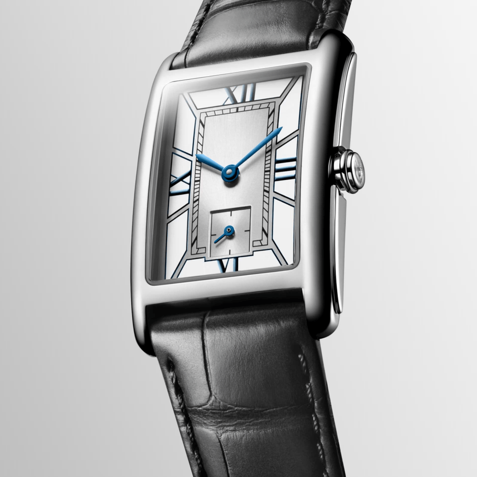 Reloj Automático Rectangular con Manecillas Azules, Cristal de Zafiro y Correa de Piel de Cocodrilo