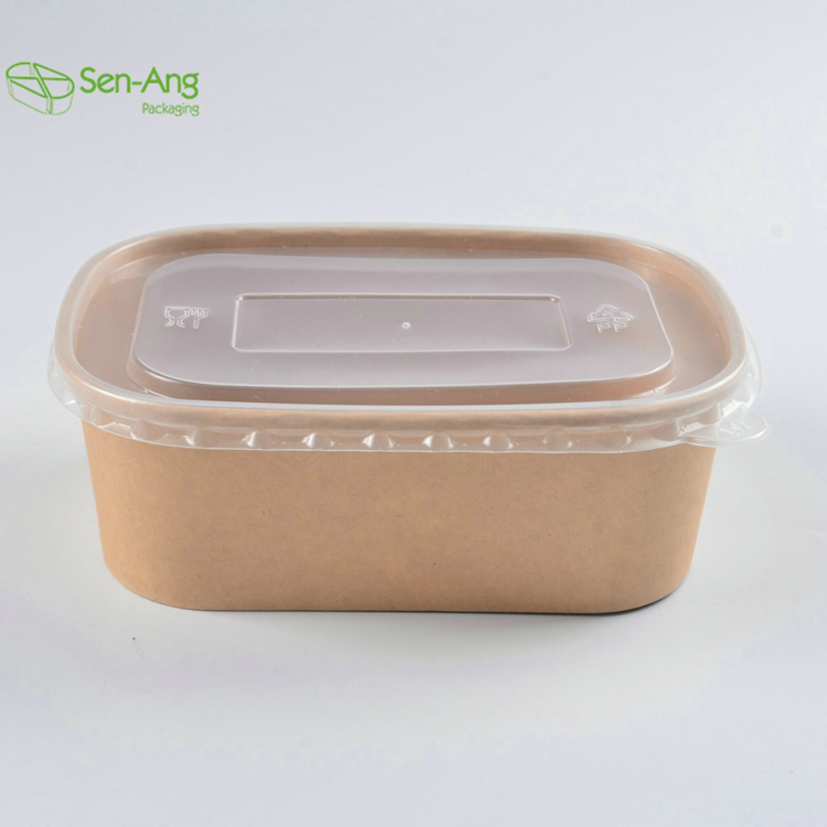 Cuencos de papel kraft biodegradables desechables cuadrados personalizados con tapas Envases de alimentos cuadrados rectangulares a la venta