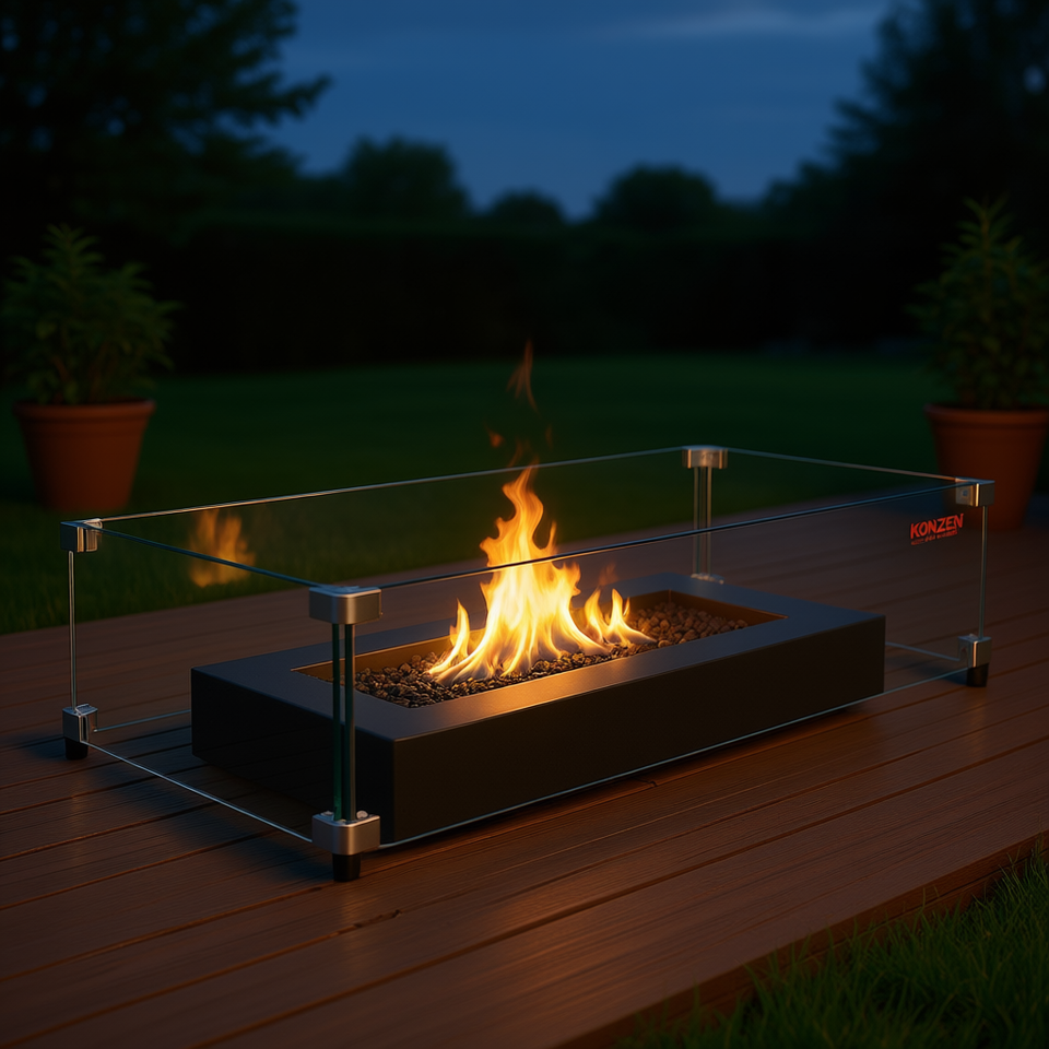 Mesa Rectangular para Fogatas Vevor de 36 x 16 x 7 Pulgadas con Protector de Viento de Vidrio Templado, Calentador de Bioetanol para Exteriores, Estilo Moderno