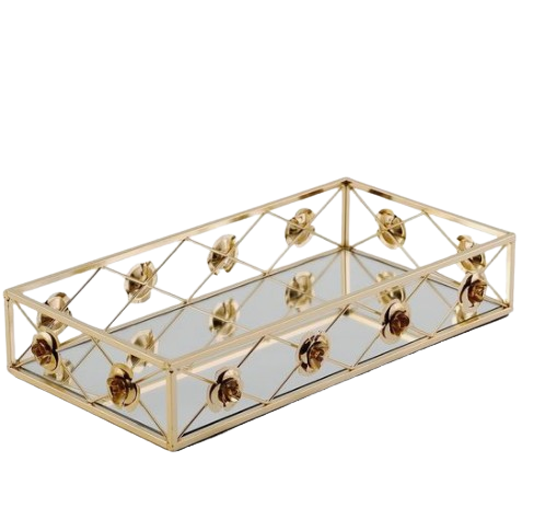 Marco Rectangular hecho a mano bandeja de cristal de Metal espejo para decoraciones de boda artículos DE SERVICIO DE Navidad bandeja de servicio de cosméticos