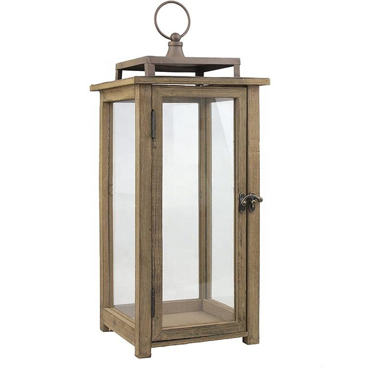 Linterna de madera a prueba de viento con marco Rectangular, con mango de Metal para colgar, para bodas y fiestas, decorativa
