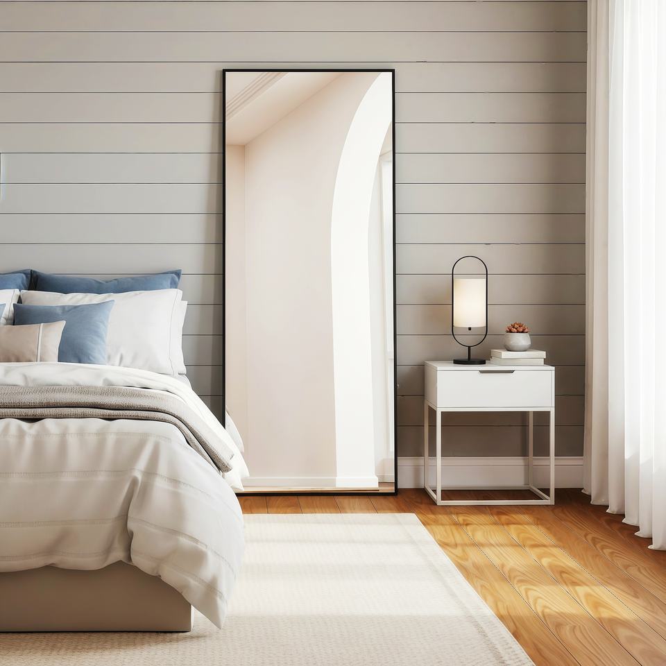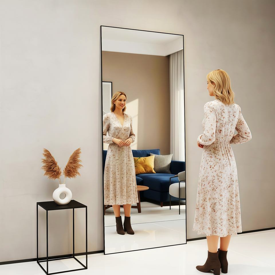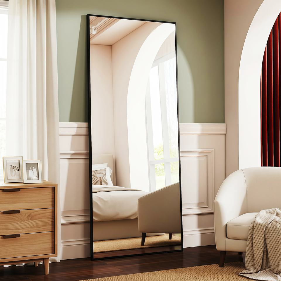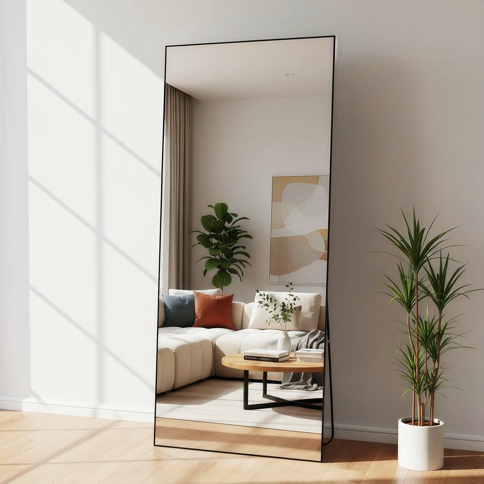 Espejo Decorativo Rectangular de Cuerpo Entero con Marco Metálico Estilo Art Deco, Hecho a Mano con Vidrio Templado Delgado, para Montar en la Pared