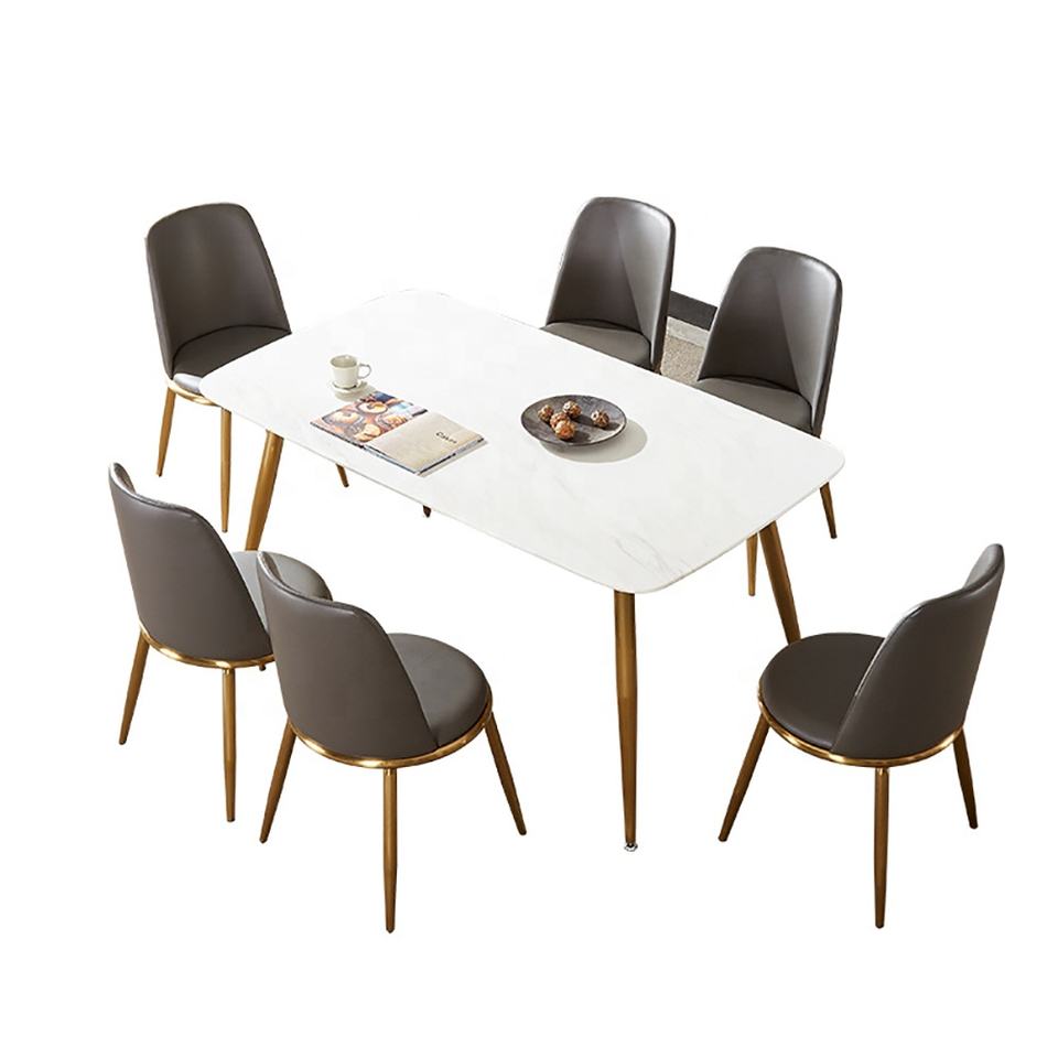 Mesas de Comedor Rectangulares Ginza de 8 Plazas, de Metal y Piedra, Estilo Italiano Moderno, Mesas de Lujo con Cubierta de Mármol, Mesa de Comedor Laminada