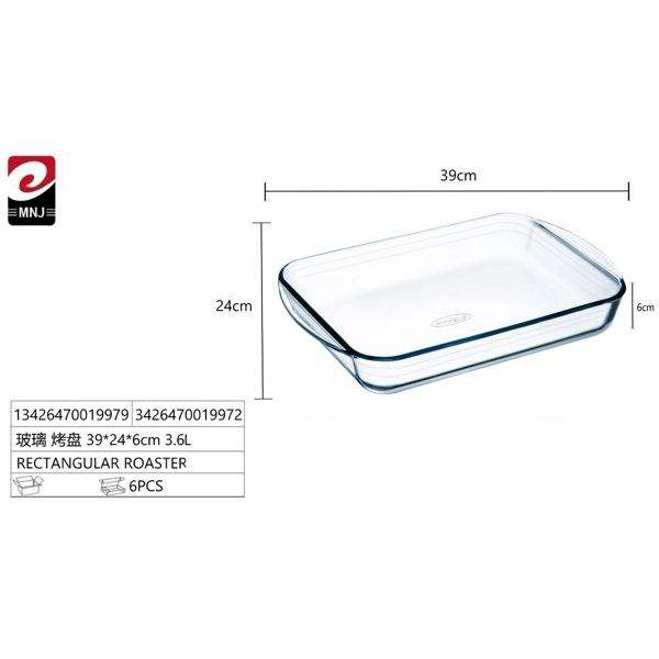 Bandeja Rectangular de Vidrio para Hornear 39*24*6cm, Asador de Vidrio Premium para Hornear y Cocinar en Casa