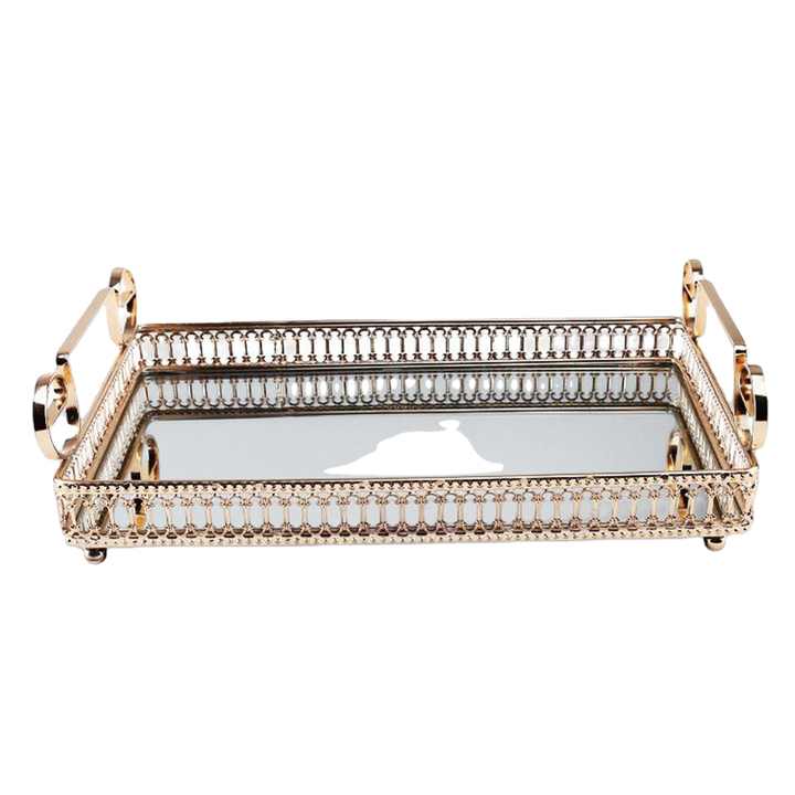 Bandeja Rectangular de cristal con espejo dorado para servir, adornos, bandejas de joyería de cristal redondas medianas y creativas, bandeja plateada, vendedor indio