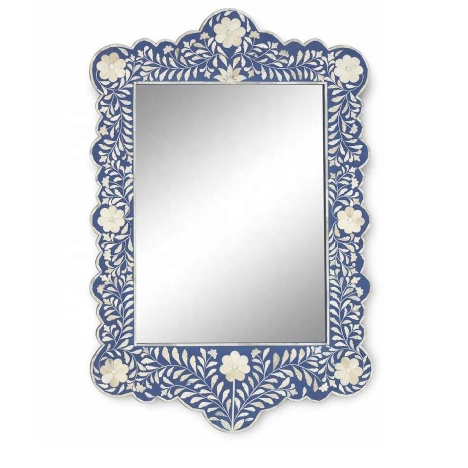 Marco de espejo con diseño Floral de incrustaciones de hueso hecho a mano Rectangular para el hogar y la Oficina decorativo para sala de estar artesanía de hueso