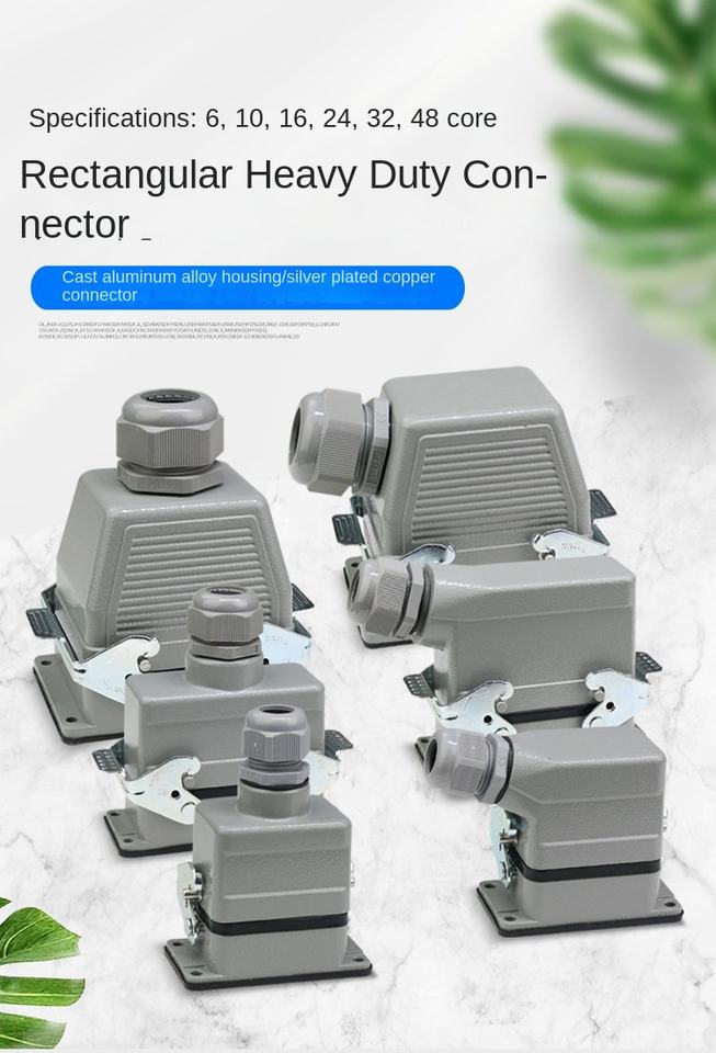 Conector de Alimentación Rectangular de Aluminio DIN de Alta Resistencia HE-6-10-16-24-32-48 Núcleos, Enchufe Industrial Impermeable para Aviación