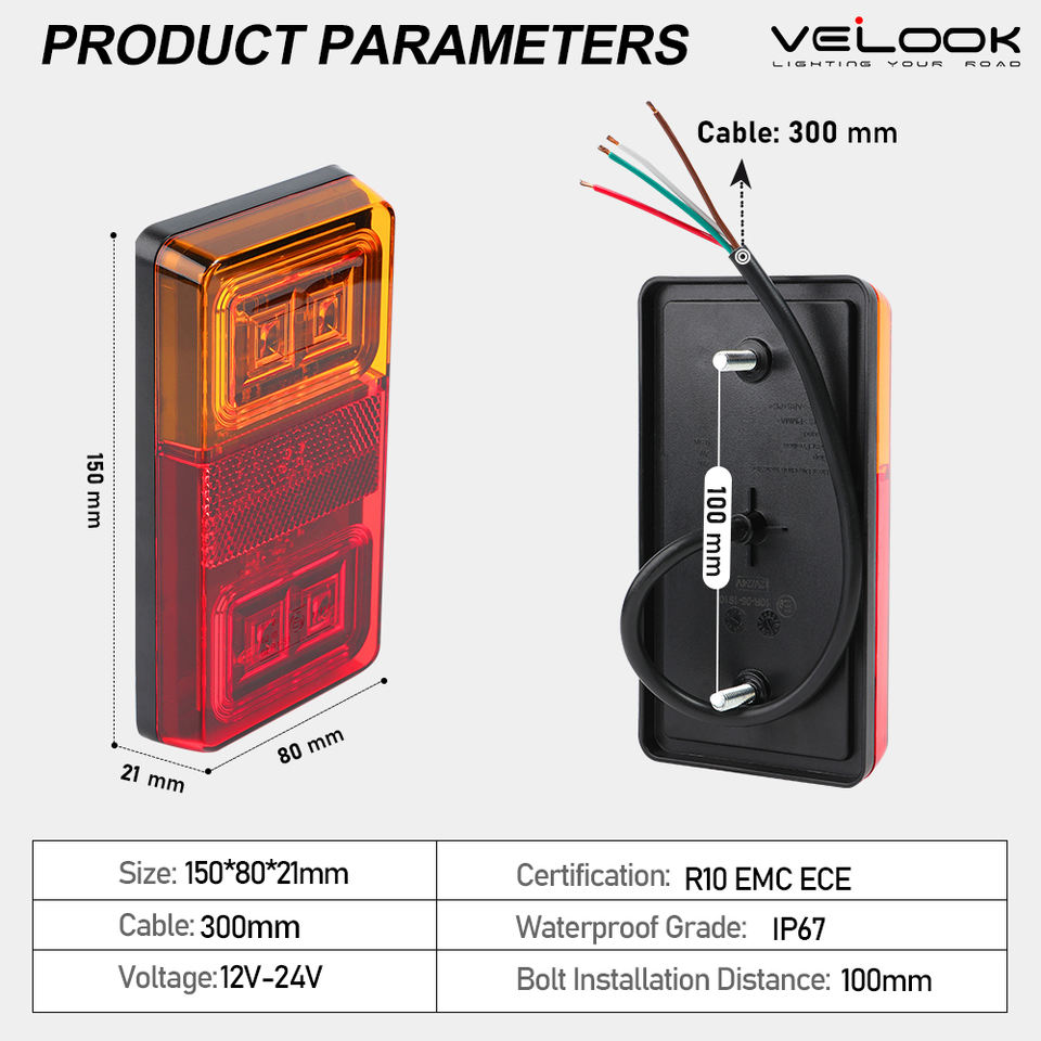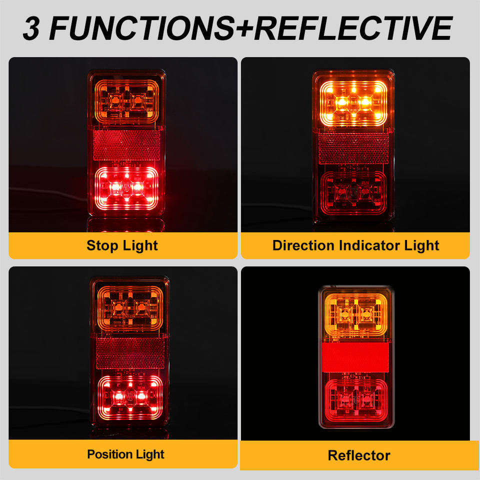 Luz Trasera LED Rectangular para Remolque, IP67 Impermeable, Luces Traseras LED para Remolque 12V 24V, Homologación ECE
