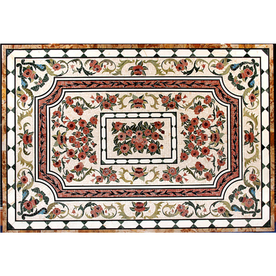 Nombre del Producto:Mesa de comedor rectangular de mármol con incrustaciones de Pietra Dura decorativa
