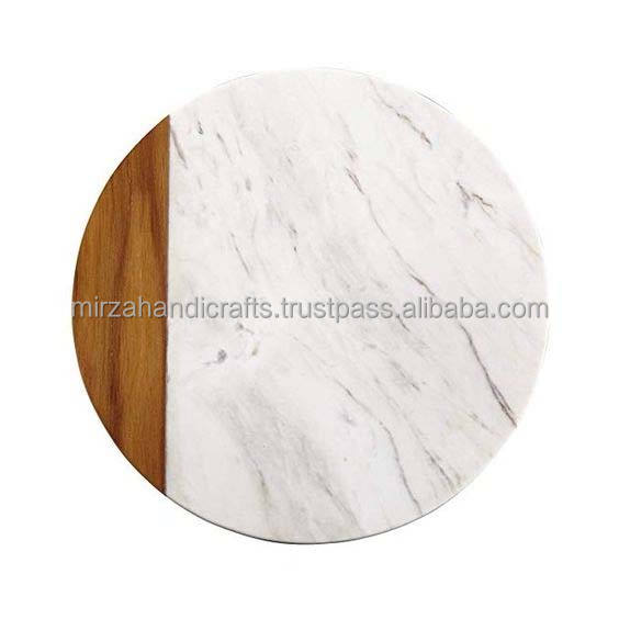 Tabla de cortar ecológica rectangular de madera de mármol con asa