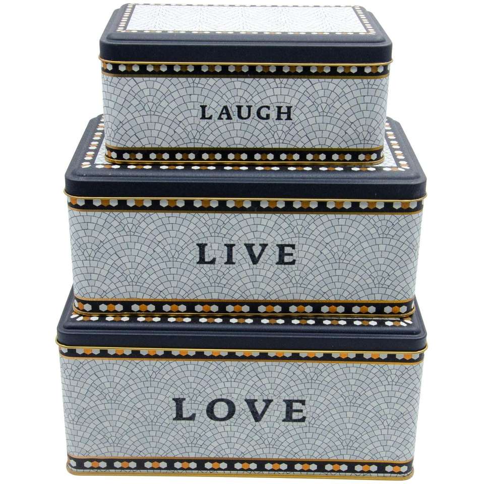 Juego de caja de almacenamiento de metal rectangular-260x170x125mm-245x145x100mm- 193x117x88mm (Juego de 3) mosaico con patrón de mosaico geométrico
