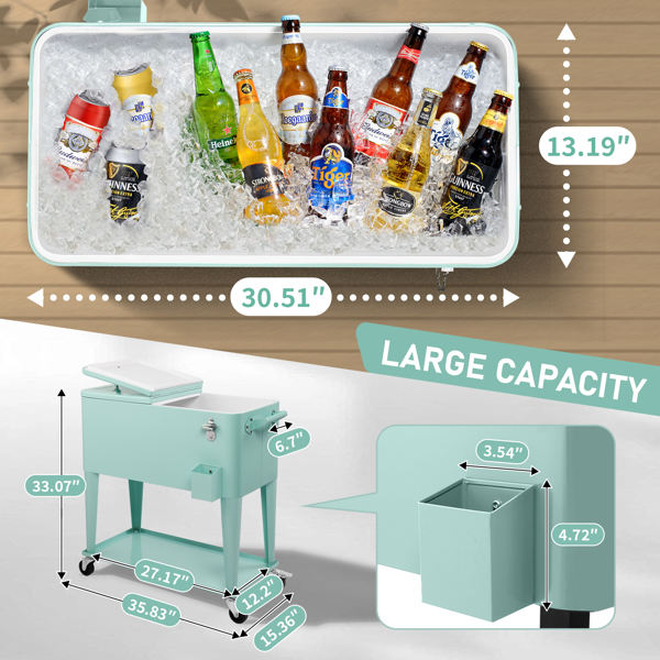 Caja Rectangular de Plástico Resistente al Agua para Congelados, 91x845x385cm, 70L de Capacidad, Uso en Exteriores, Aislamiento, Verde Menta