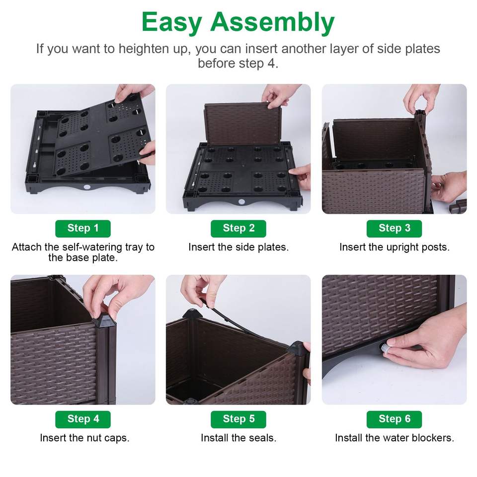 Jardinera Rectangular Elevada con Sistema de Autorriego, Elegante Jardinera Elevada para Patio, Balcón, Flores, Macetas