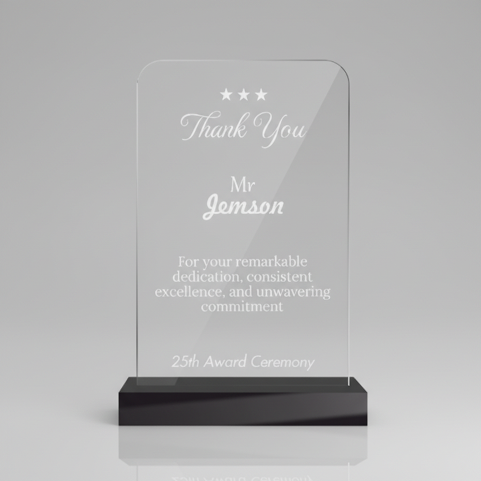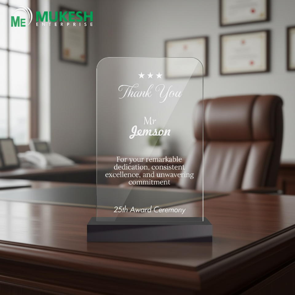 Trofeo de Acrílico Rectangular con Borde Pulido y Grabado, Impresión Tipográfica, Recuerdo para Eventos Corporativos, Empleados, Mukesh