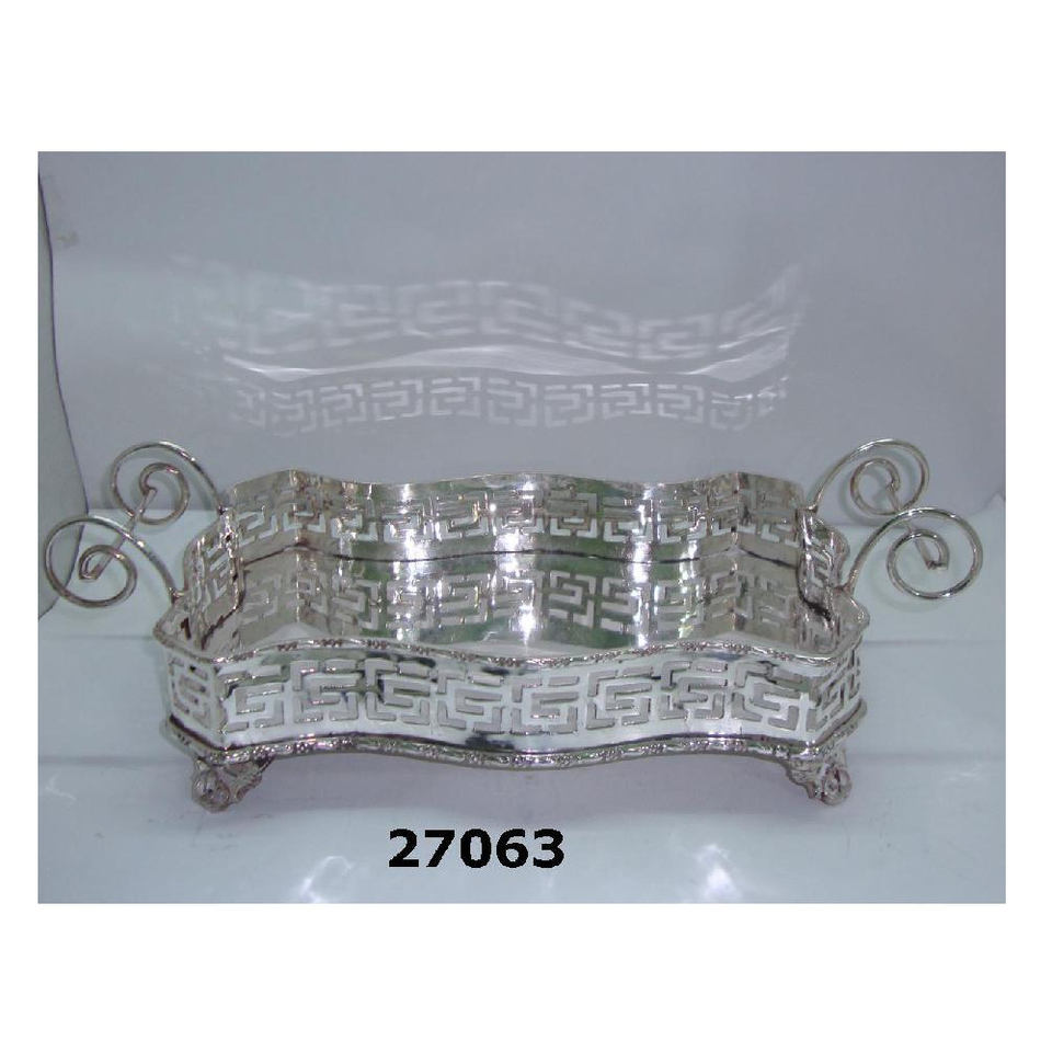 Bandeja para servir té de latón de forma rectangular Bandeja para servir plateada con asas