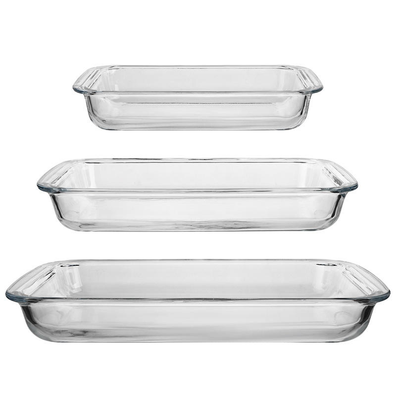 Juego de bandejas para hornear de vidrio de borosilicato de alta resistencia, de forma rectangular, con tapa para horno microondas.