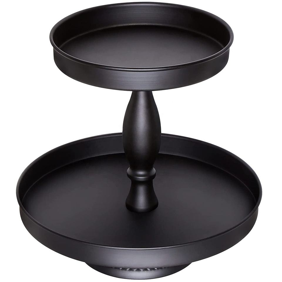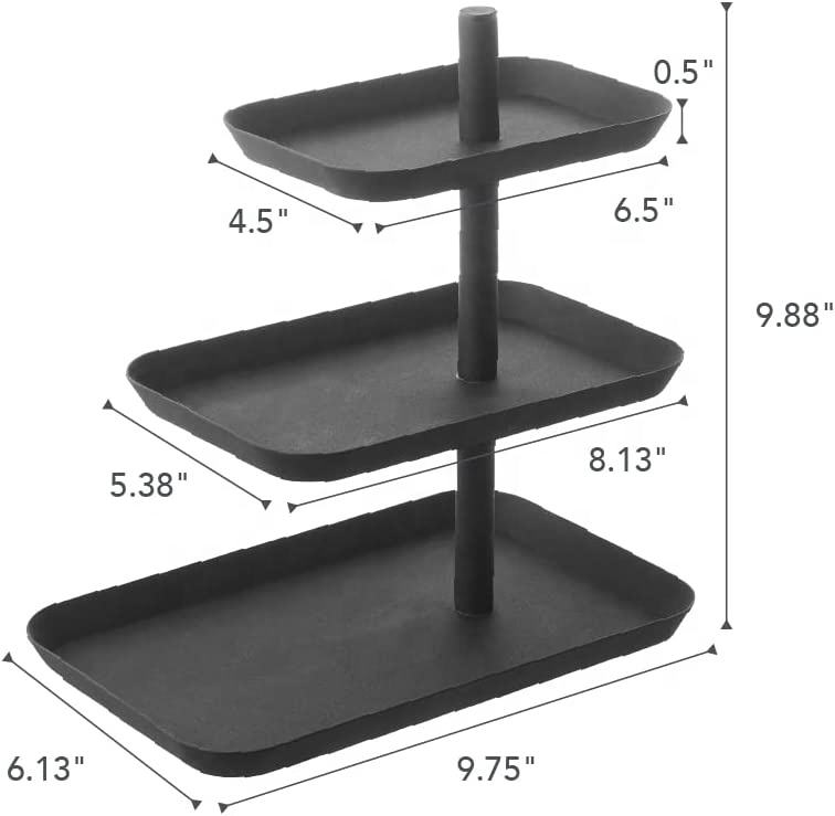 Soporte metálico de tres niveles para Tartas, organizador de exhibición de comida, forma Rectangular, negro, moderno, para cocinas