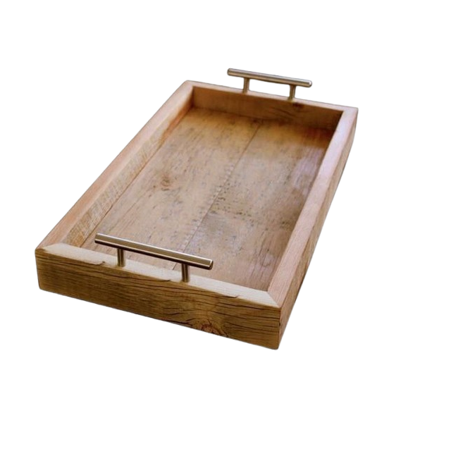 Bandeja de servicio de madera de forma personalizada de estilo nórdico de forma rectangular con asa para hotel y cafetería en casa que sirve comida deliciosa