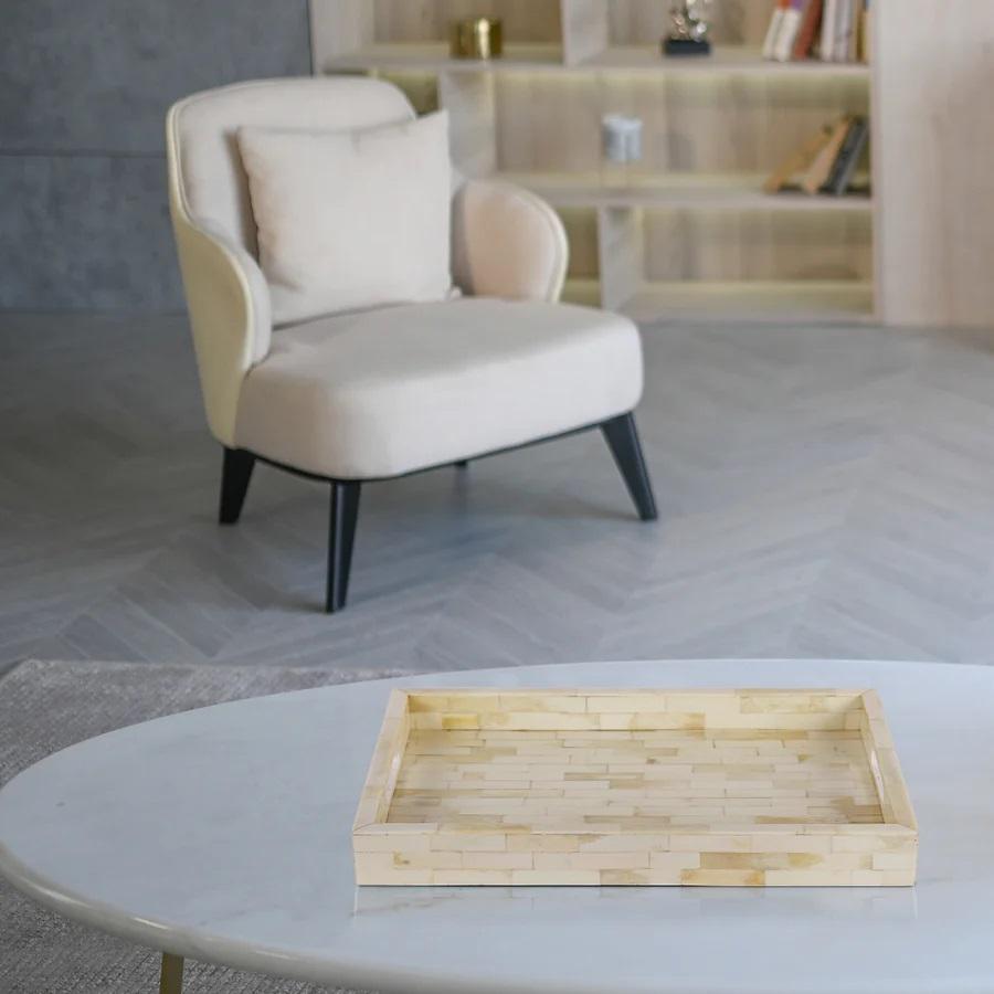 Hueso de forma rectangular hecho con diseño elegante, bandeja de servicio clásica, decoración de mesa, artículos de servicio sostenibles