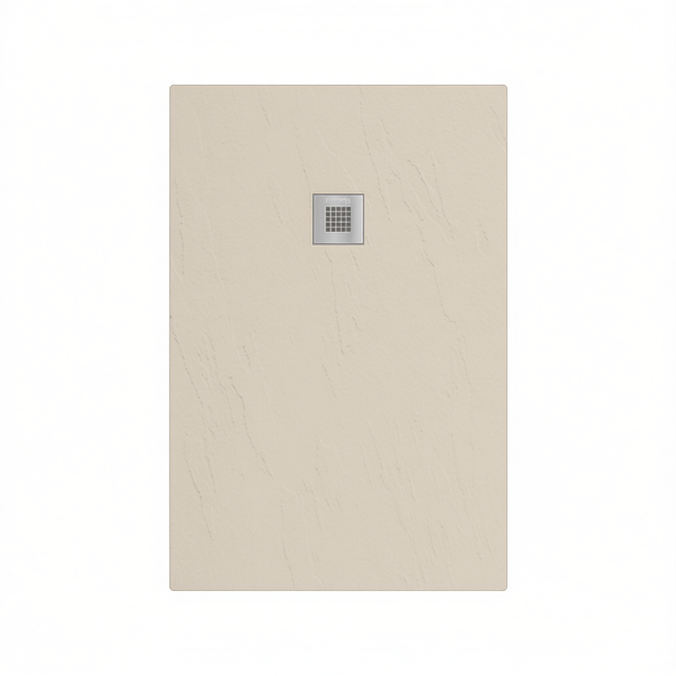 Plato de ducha rectangular de hormigón de 80 x 120 cm con sistema de drenaje para uso en baño