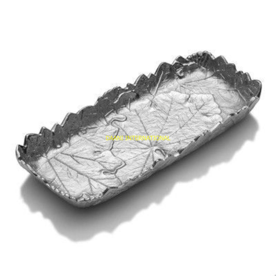 Bandeja Rectangular con Diseño de Hoja de Plata para Servir, Plato Decorativo de Aluminio para Centro de Mesa, Aperitivos, Dulces y Café