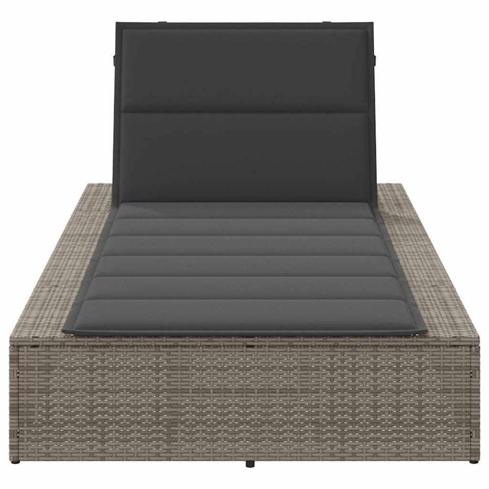 Tumbona Rectangular Individual Acolchada de Ratán PE Gris para Exteriores con Respaldo, Diseño Contemporáneo