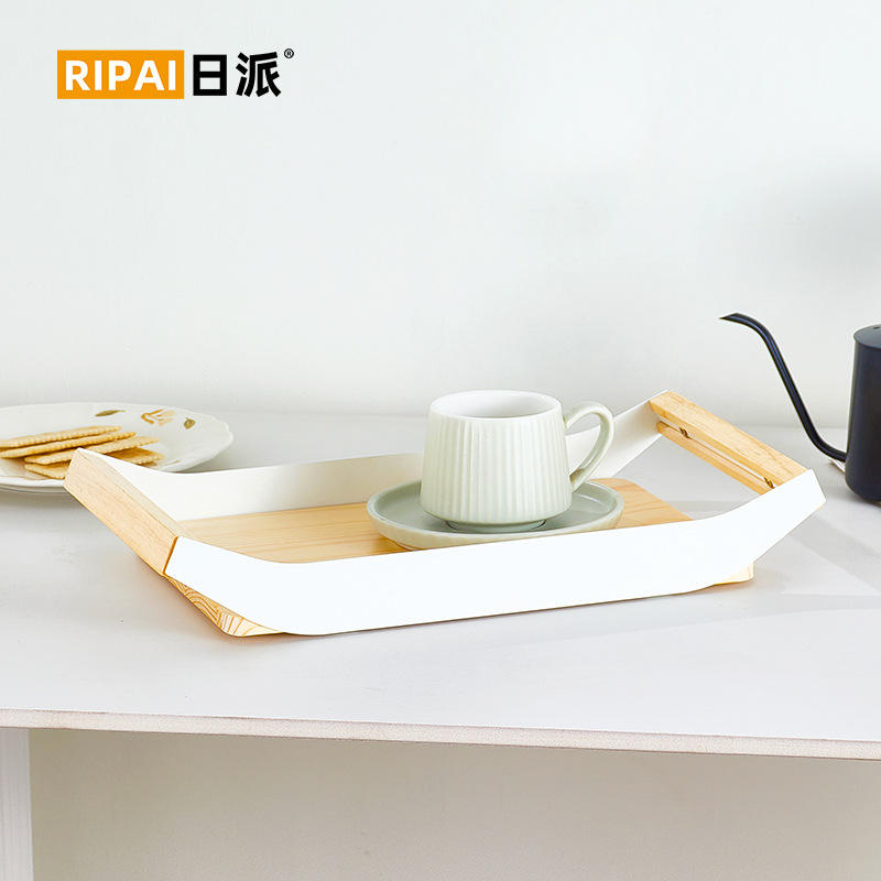 Bandeja rectangular de madera maciza con asas, blanca, tamaño pequeño, tamaño grande, para servir café, té, uso doméstico