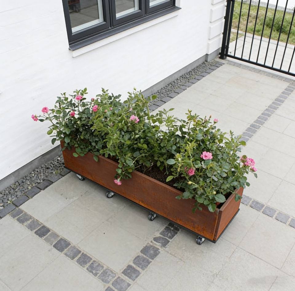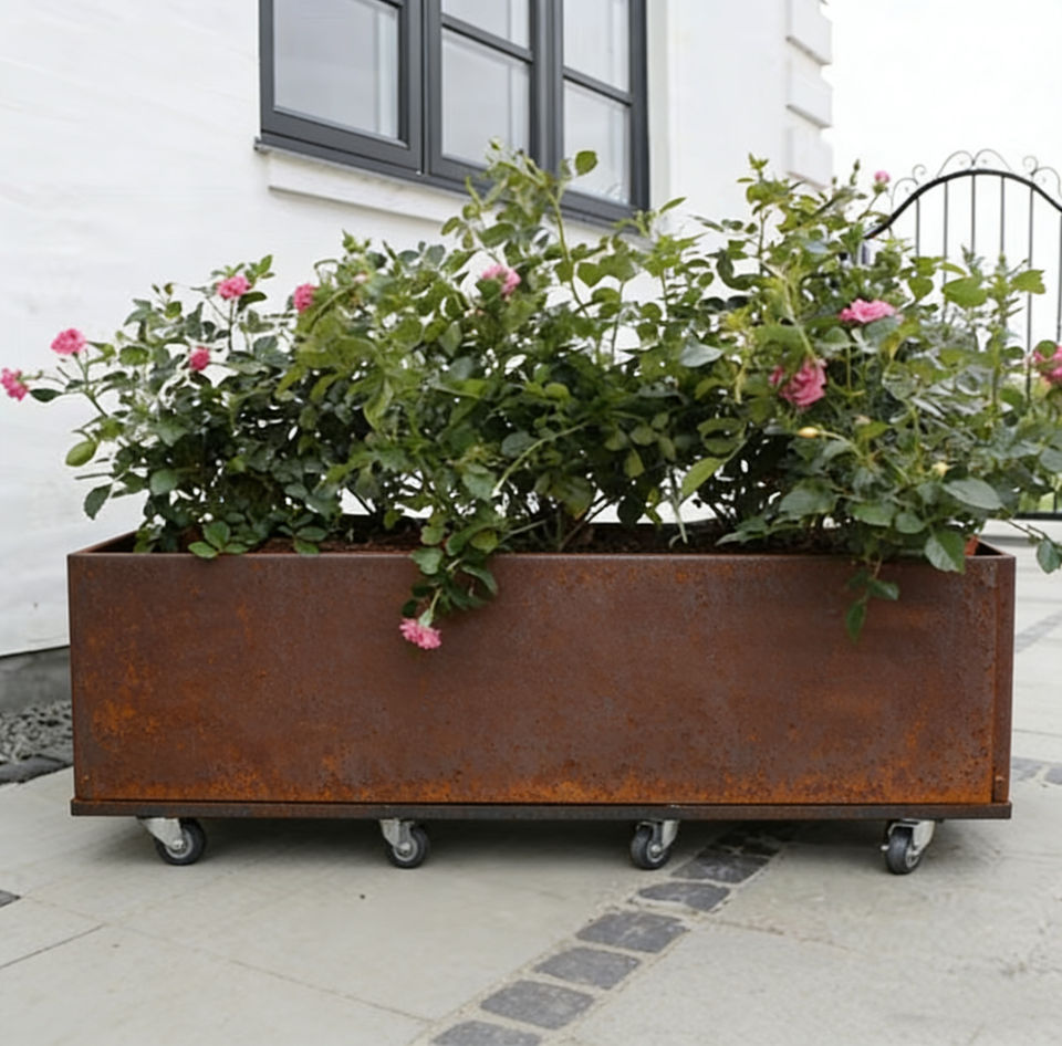 Jardinera Rectangular de Acero con Soporte, Maceta Alta y Duradera, Ecológica, para Exteriores, Hogar, Patio, Decoración Moderna de Jardín