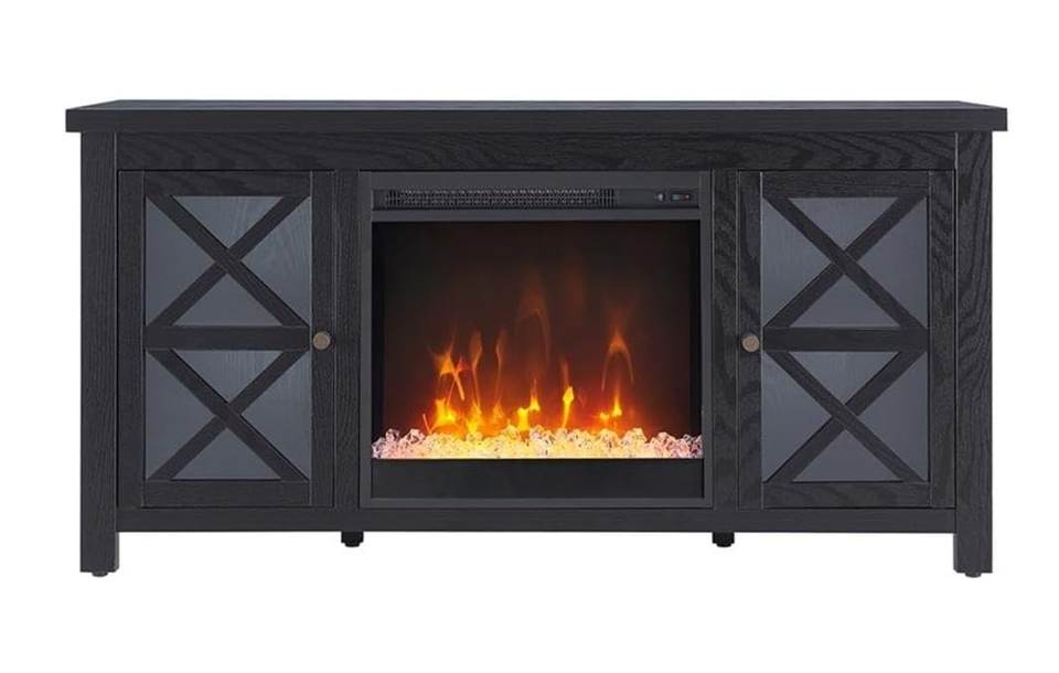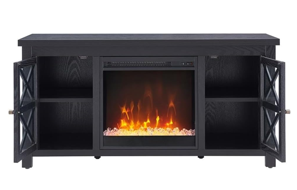 Soporte de TV rectangular con chimenea de cristal para TV de hasta 55 "en negro, soportes de TV de chimenea eléctrica para la sala de estar